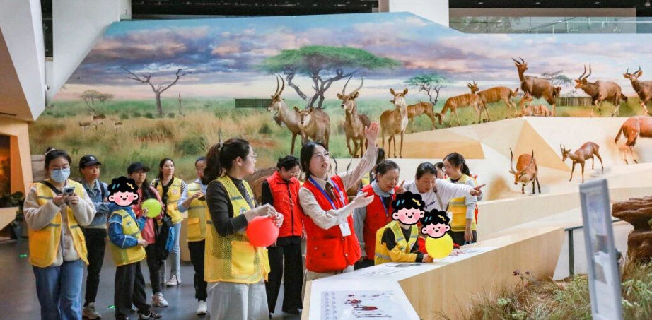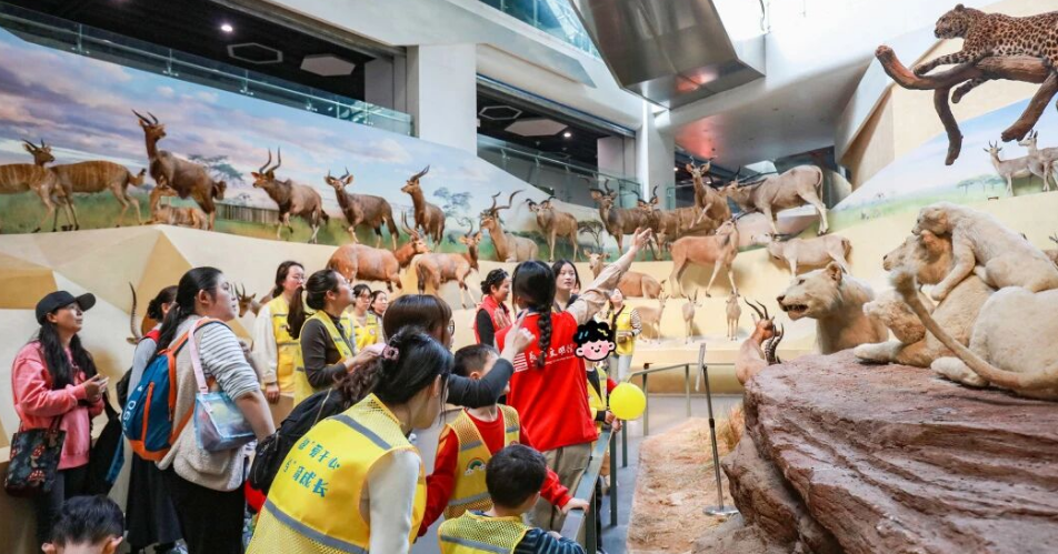 随后,孩子们走进武汉自然博物馆,开启趣味自然探秘之旅。在志愿者全程引导陪伴下,大家近距离观赏了非洲草原象、长颈鹿等珍贵标本。我馆希望通过这些真实的生命印记,轻轻叩开孩子们的感官之门,激发他们对广阔世界的好奇与认知,在他们幼小的心灵中种下探索自然的种子。