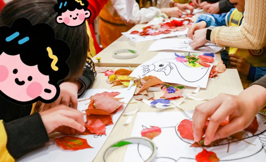 活动的最后一站是充满创造力与想象力的“树叶拼贴画”手工环节。孩子们走进大自然,精心收集一片片形态各异的叶子,然后发挥自己的奇思妙想,将这些叶子拼贴成松鼠、天鹅、蝴蝶等生动可爱的图案。当孩子们举起自己的作品,尝试表达与分享时,他们每一位都是充满自信的“小小艺术家”。