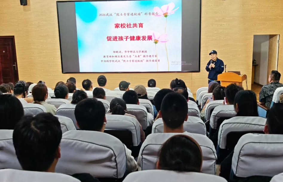 为深入推进家校社协同育人,助力六年级学生身心健康、平稳成长,4月17日,武汉市硚口区红旗村小学成功开展2026武汉市“院士专家进校园”科普报告暨家长学校专题活动。学校特邀华中师范大学郑晓边教授带来以《家校社共育,促进孩子健康发展》为主题的家庭教育科普讲座,六年级家长齐聚校园,共学科学育儿理念,同商孩子成长大计。