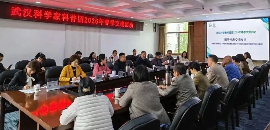 4月22日,武汉科学家科普团(以下简称“科普团”)2026年春季交流活动在中国科学院武汉分院举办。中国科学院院士、中国科学院精密测量科学与技术创新研究院研究员孙和平,中国科学院武汉分院副院长、分党组成员关武祥,武汉市科协科普部负责人、三级调研员吴宇明,武汉大学物理科学与技术学院教授石兢,科普团团长、中国科学院水生生物研究所研究员张先锋,科普团代表、中国科学院武汉分院系统单位的科技工作者代表和水果湖街道小洪山社区代表共30余人参加活动。