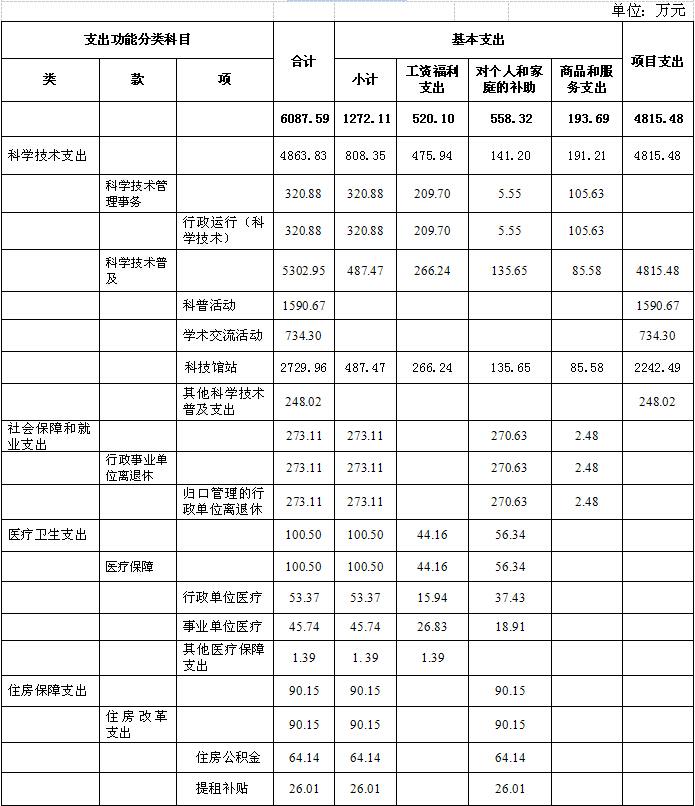 2014年武汉市科学技术协会财政拨款(补助) 支出预算表