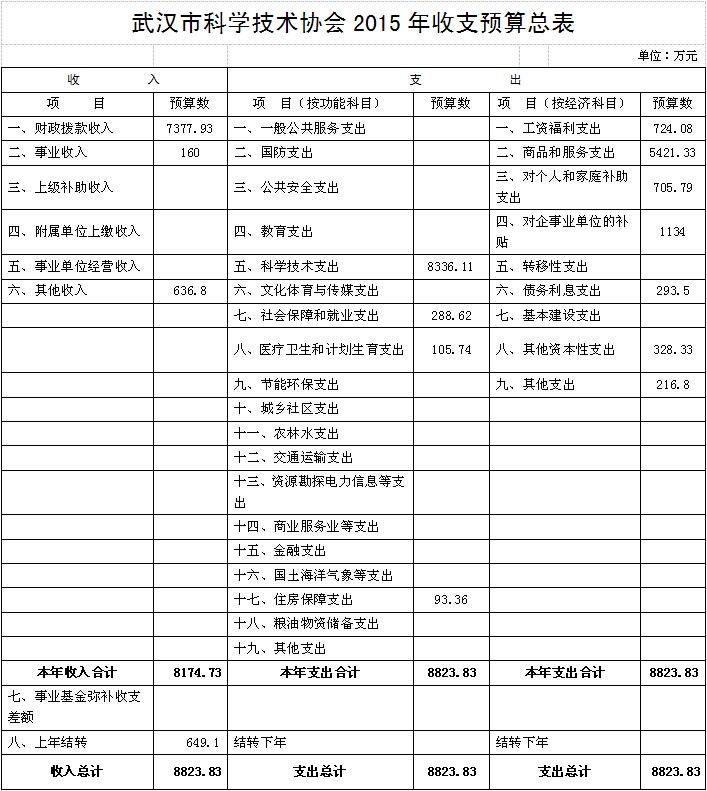 武汉市科学技术协会2015年收支预算总表