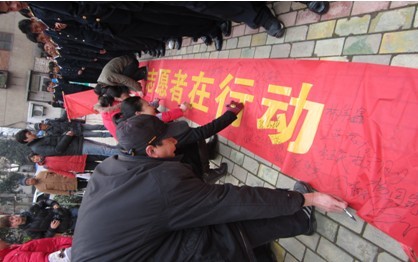 仪式上,纺机社区与这些单位签定了共建协议书,和平街党工委组织部白主任、社区党总支书记程莲向优秀志愿者颁发荣誉证书,优秀科普志愿者们又向大学生科普志愿者颁发志愿者证。随后,伴随着志愿者之歌《在你身边》,志愿者们依次在倡议横幅上签名。活动现场还开展了科普志愿者宣传服务活动,向居民宣传如何保护眼睛、如何养成健康的生活习惯、如何防火等科普知识。“团结、互助、友爱、奉献”的志愿者精神犹如春风吹遍社区每个角落,在你身边、在他身边、在大家身边。