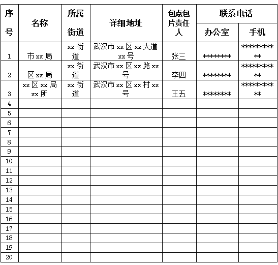 请各区、市直各相关单位、各窗口行业参照2016年9月份下发的《关于进一步加强全市重点公共场所包点包片责任制的通知》(武文明〔2016〕52号)要求,做好摸排、整理、填表、上报工作。