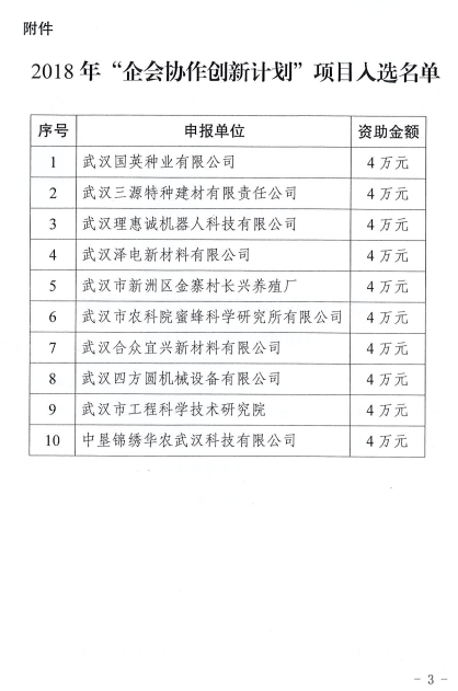 关于2018年“企会协作创新计划”项目评审结果的通报