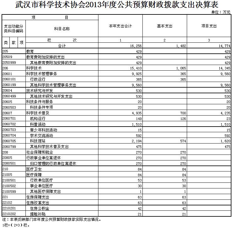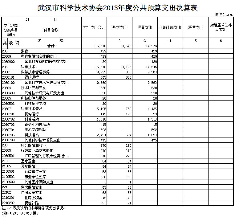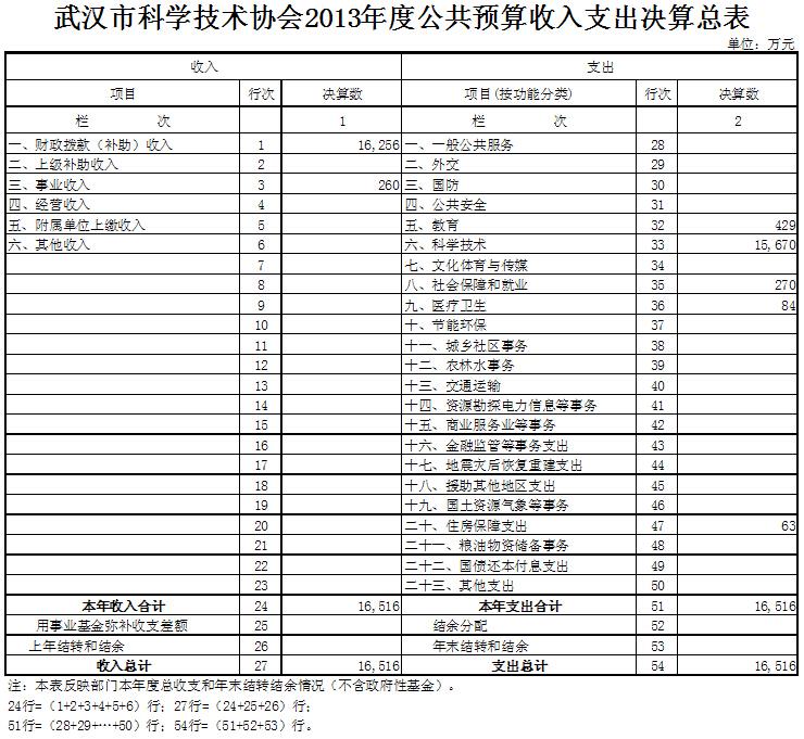 二、武汉市科学技术协会2013年度公共预算收入支出决算总表
