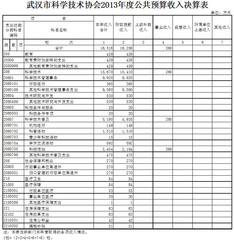 三、武汉市科学技术协会2013年度公共预算收入决算表