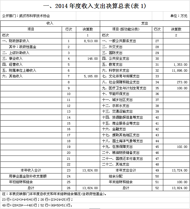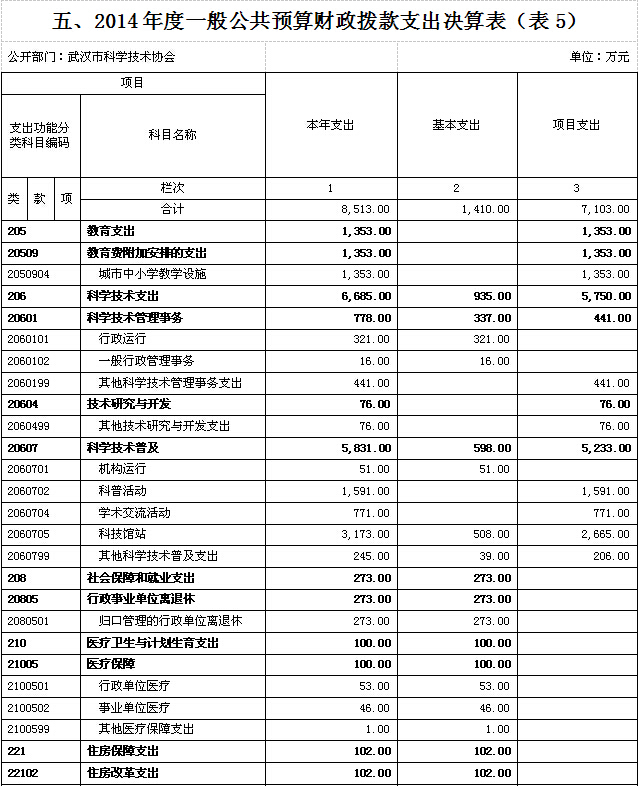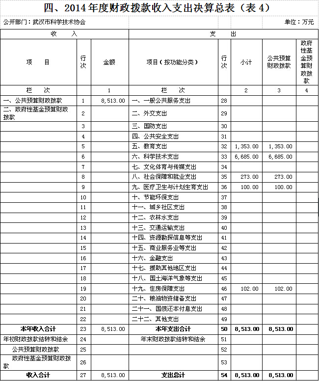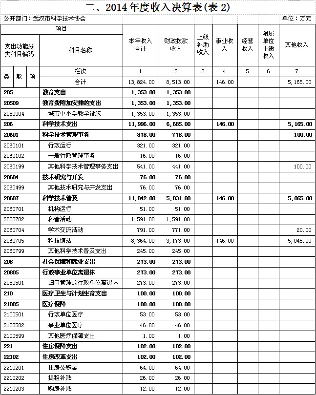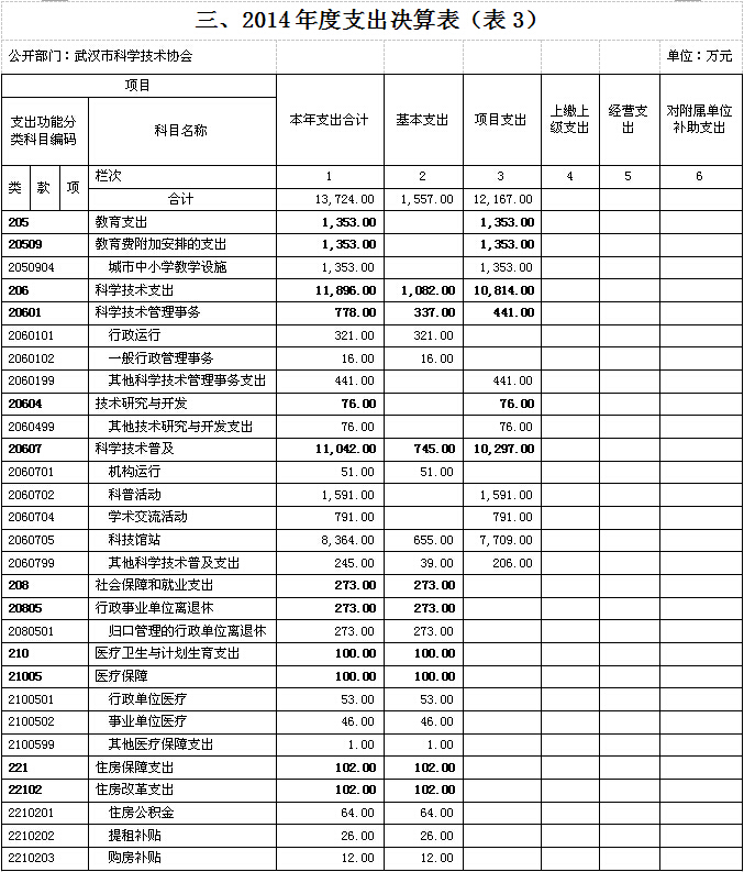 第三部分、武汉市科学技术协会2014年度部门决算表