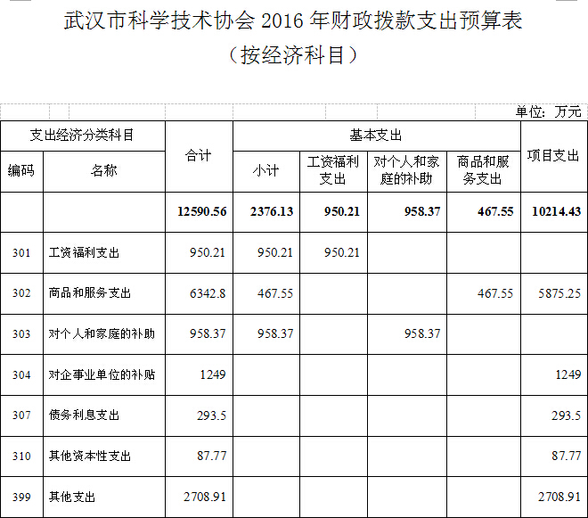 武汉市科学技术协会2016年财政拨款支出预算表 (按经济科目)