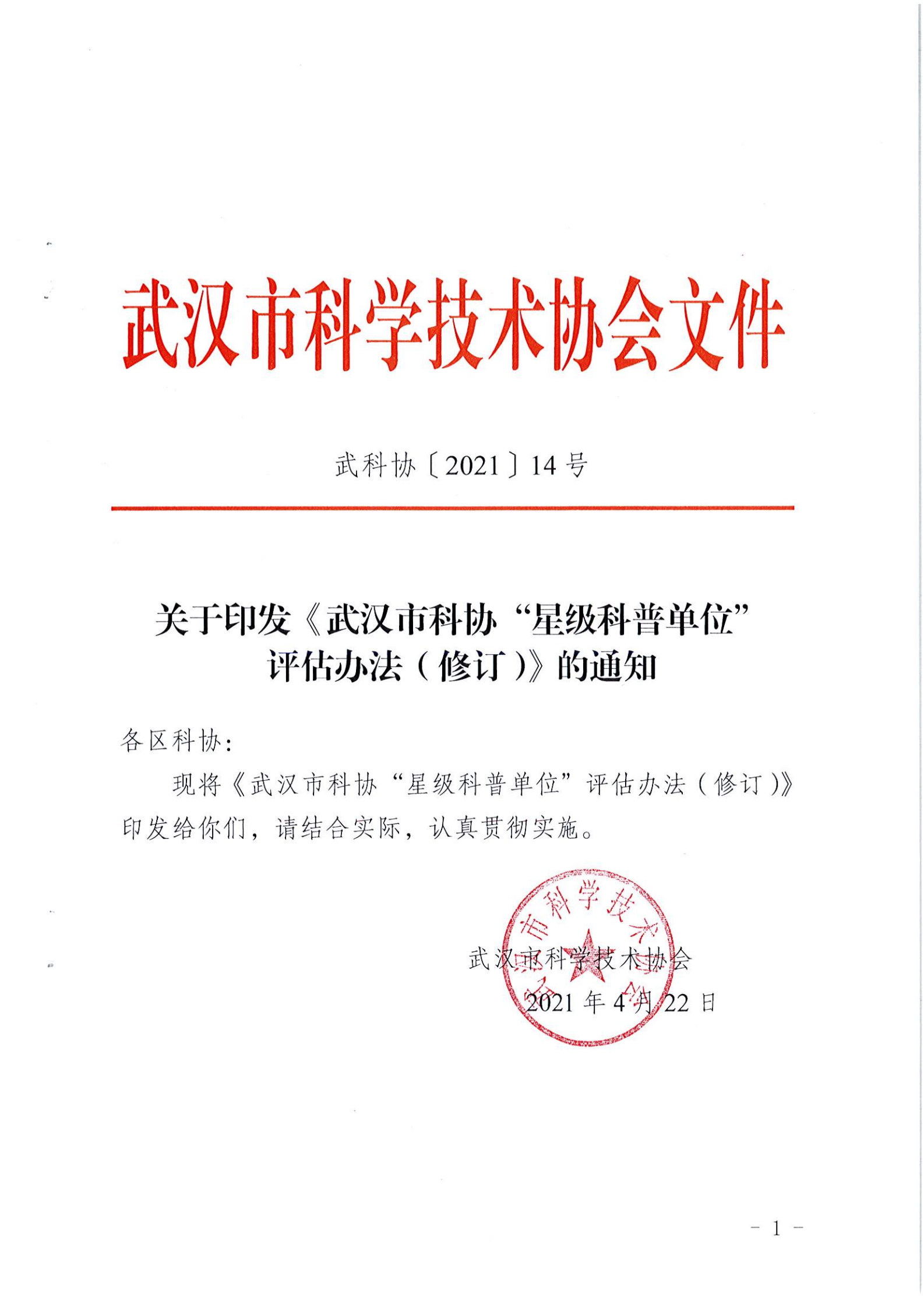 关于印发《武汉市科协“星级科普单位”评估办法(修订)》的通知