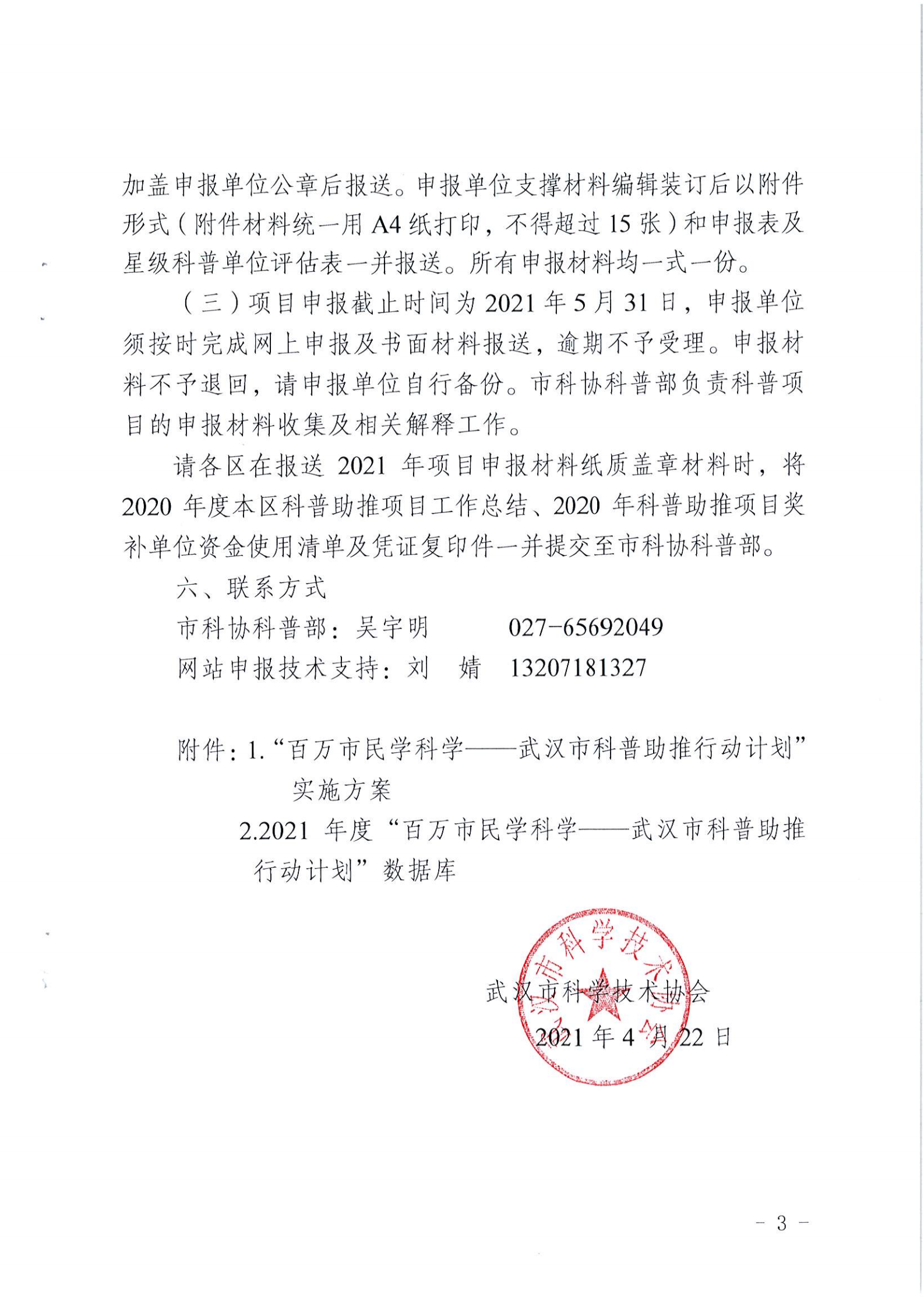 关于组织实施2021年度“百万市民学科学——武汉市科普助推行动计划”的通知