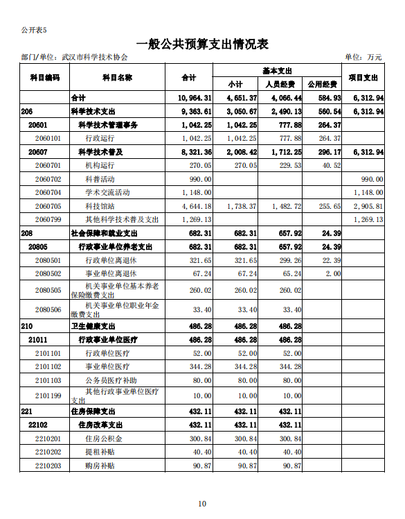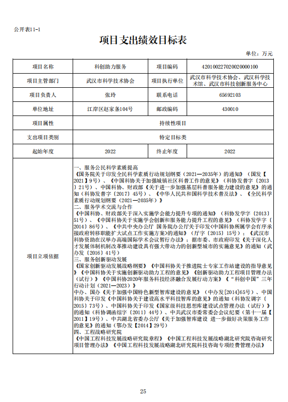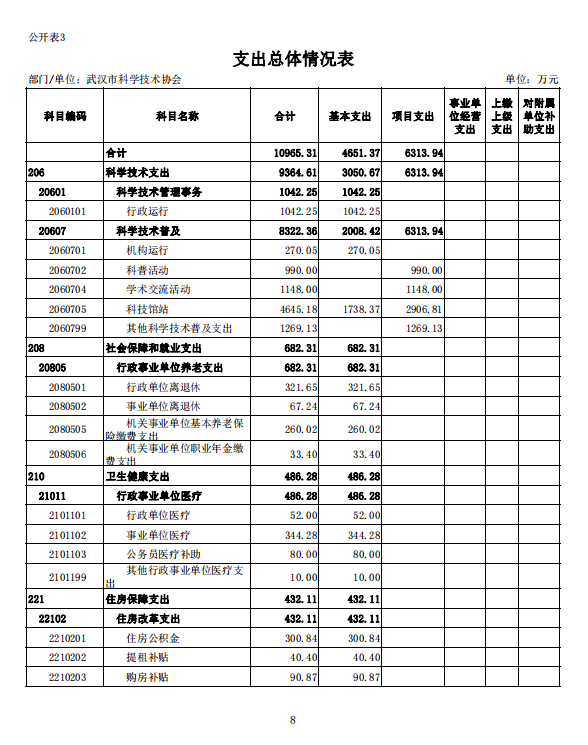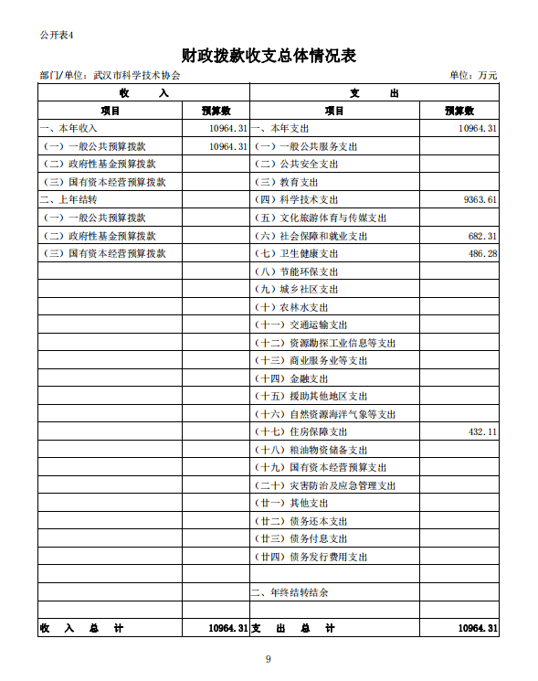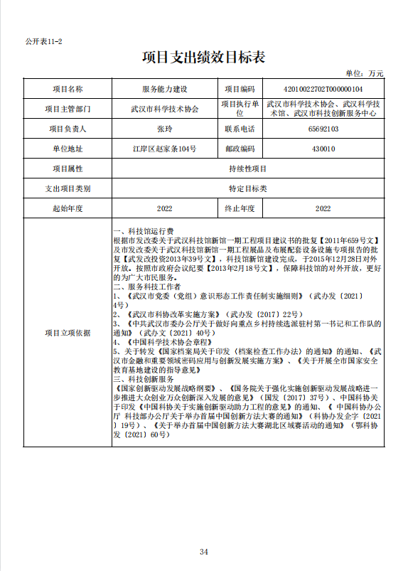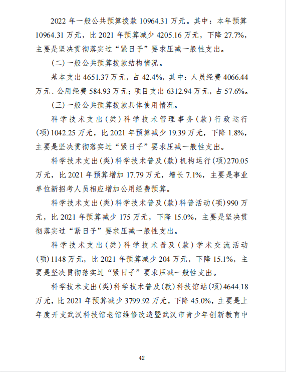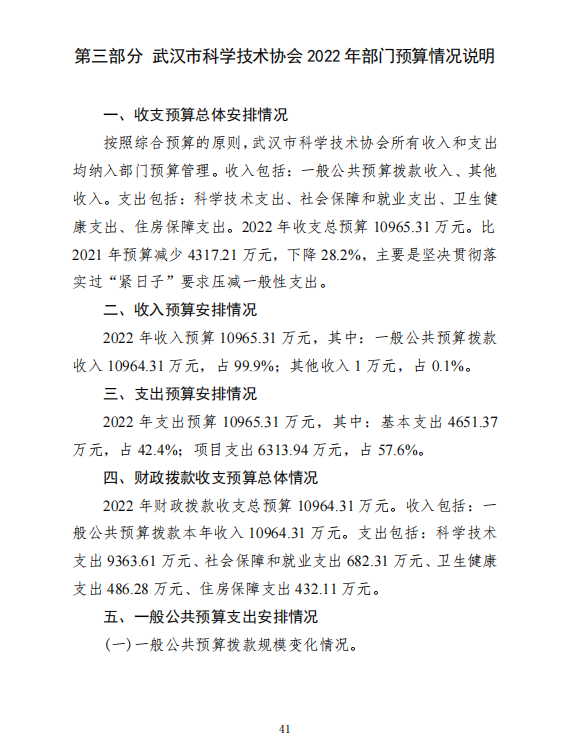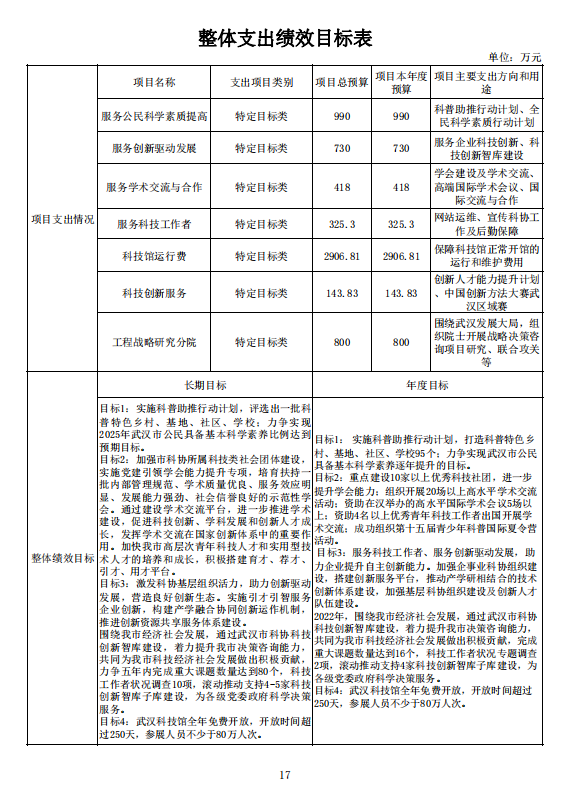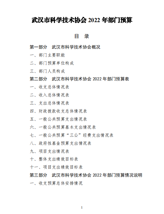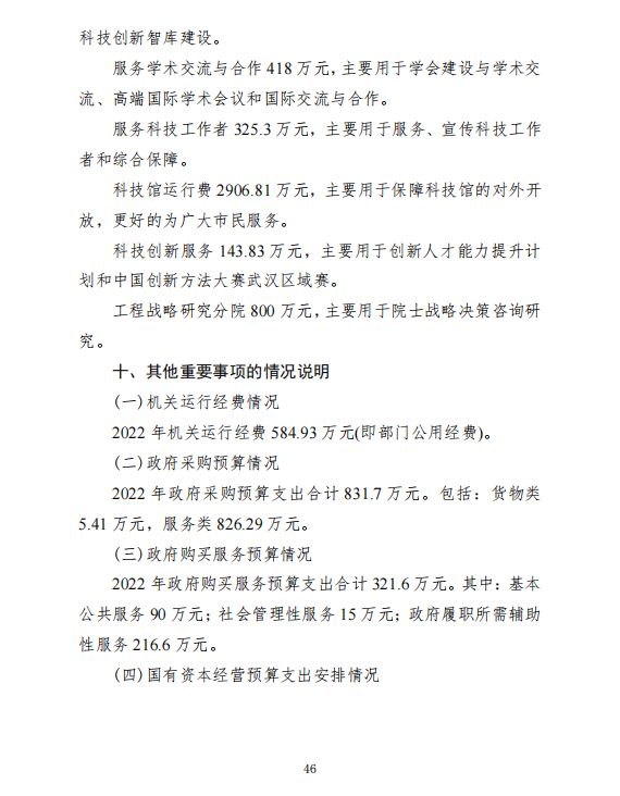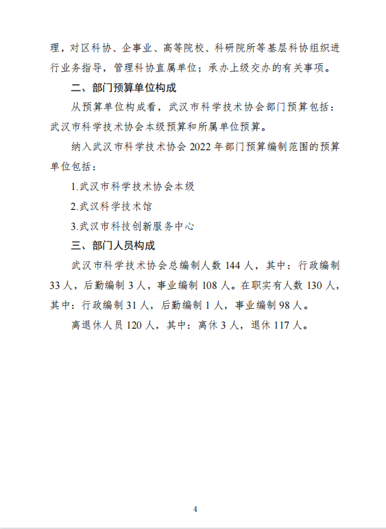 武汉市科学技术协会2022年部门预算