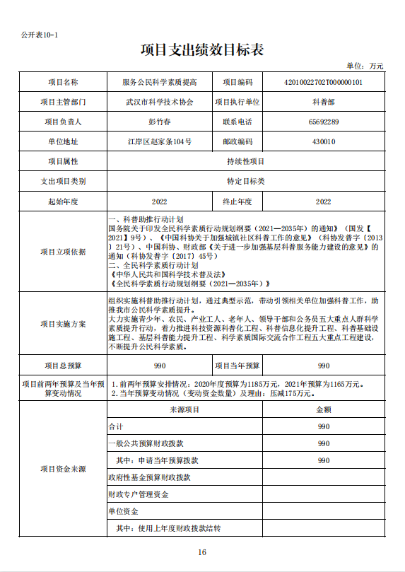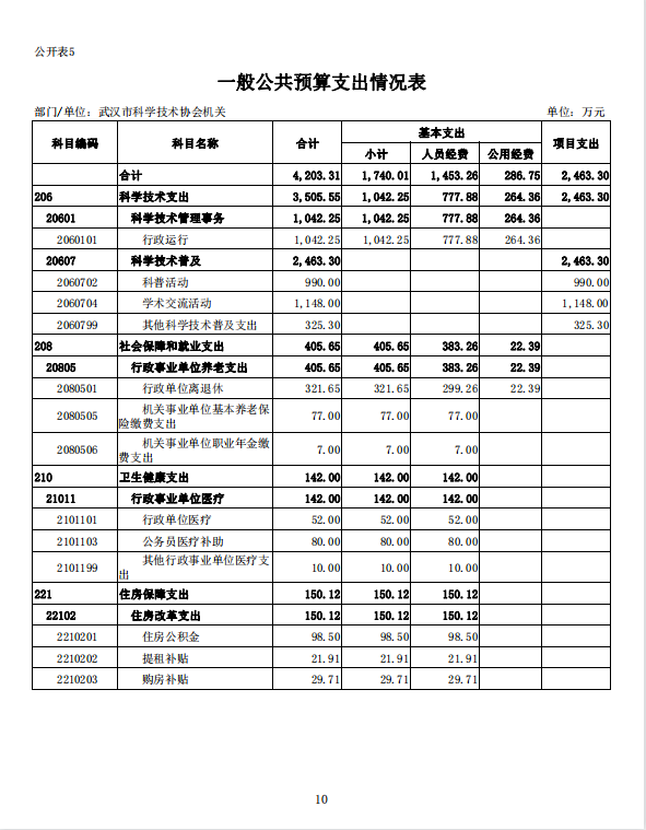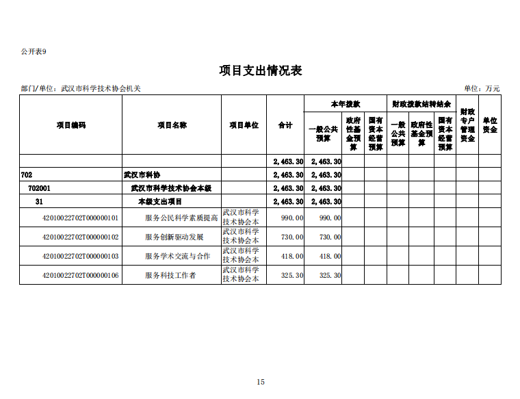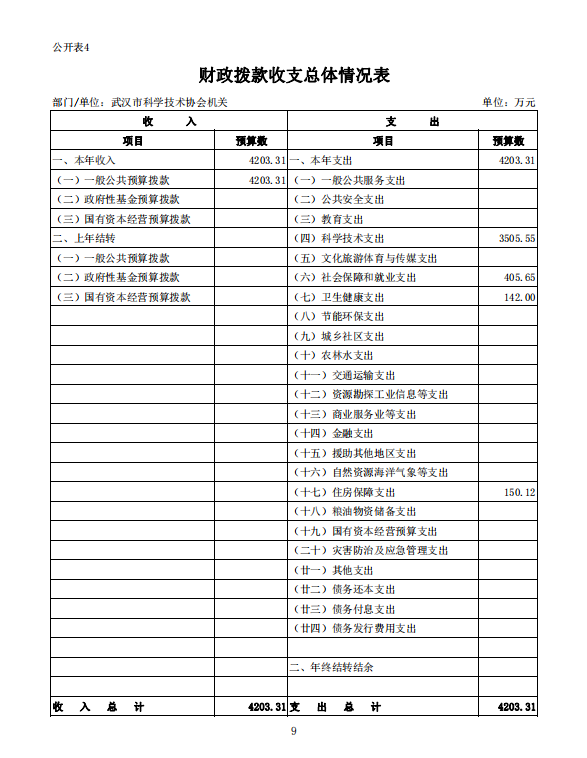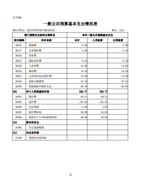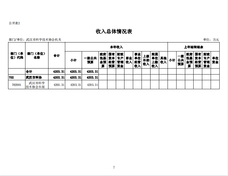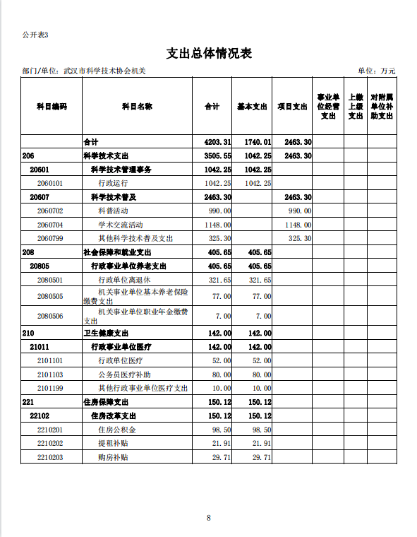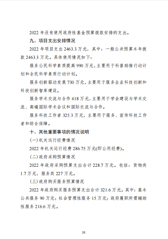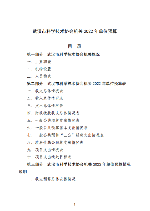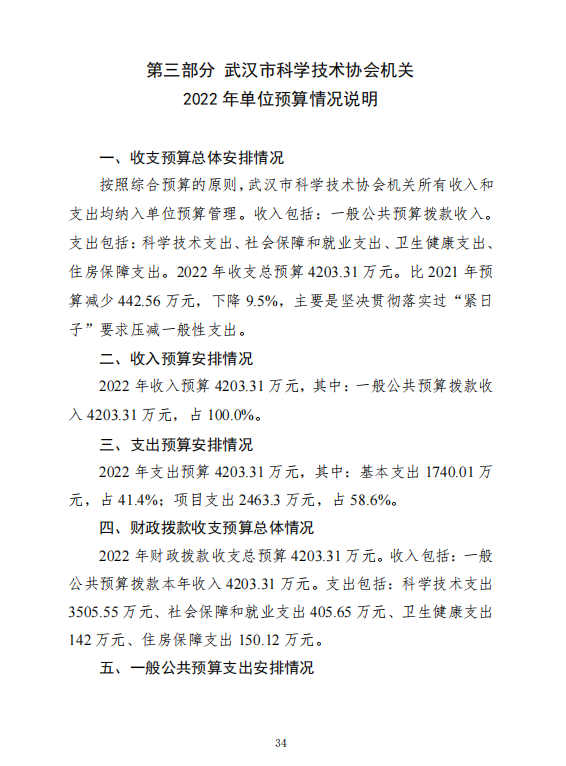 武汉市科学技术协会机关2022年单位预算