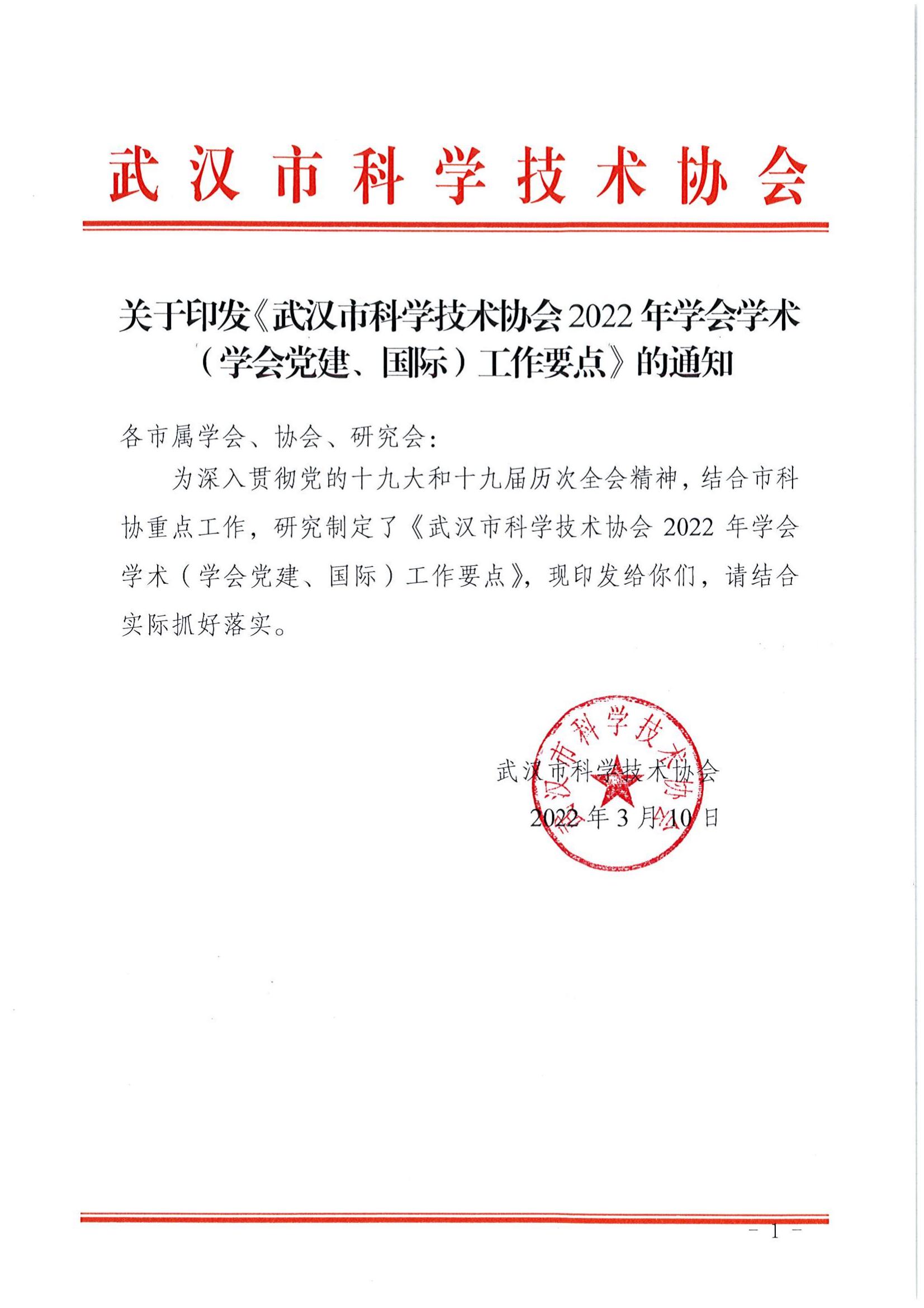 关于印发《武汉市科学技术协会2022年学会学术(学会党建、国际)工作要点》的通知