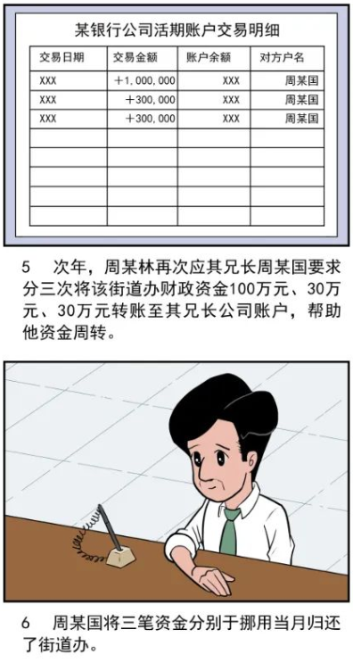 2015年5月8日,时任Y市某街道财政所所长周某林为帮助解决其兄长某公司法定代表人周某国经营周转困难,周某林向街道办事处主任口头请示后,以为企业垫交税款为名,安排工作人员将该街道办事处财政资金一百万元转账至其兄长公司账户,并约定一月内归还。同月15日、22日,周某国通过公司账户和其个人账户分两笔各五十万元将资金归还。