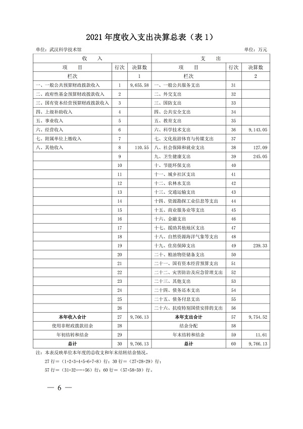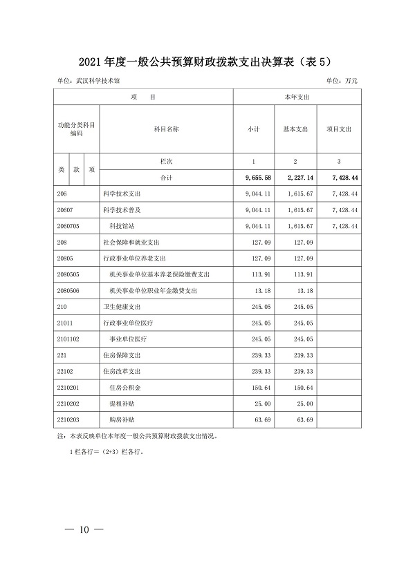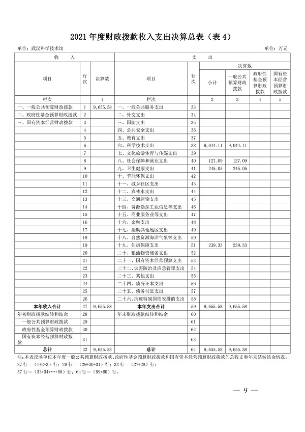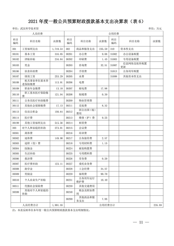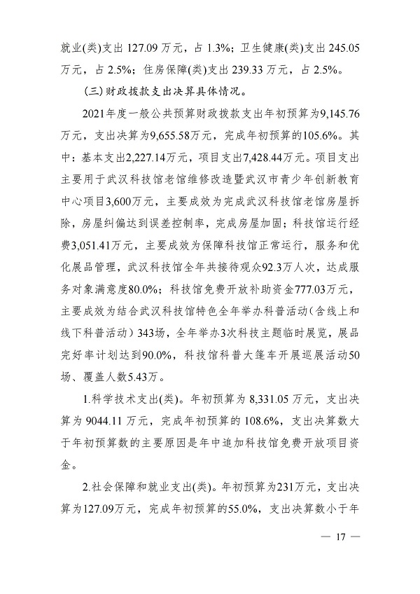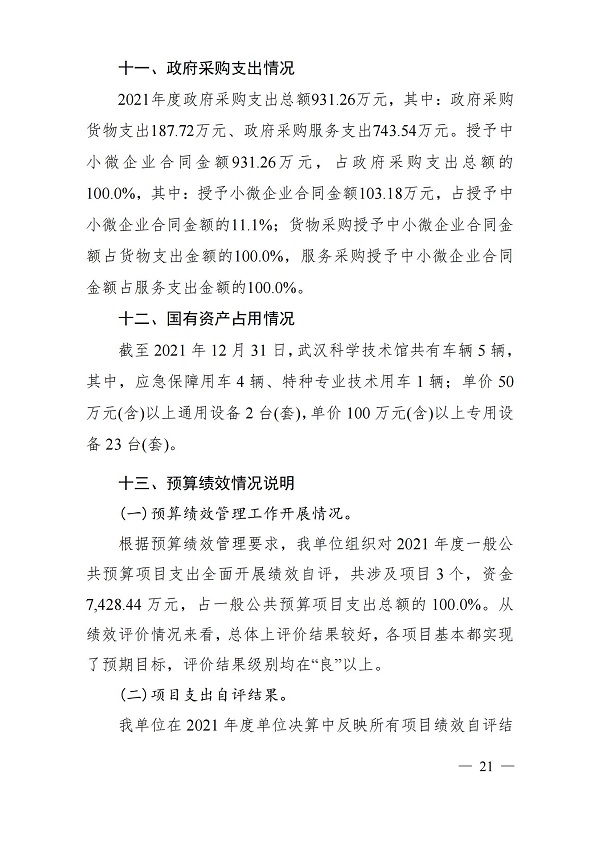 2021年度武汉科学技术馆单位决算