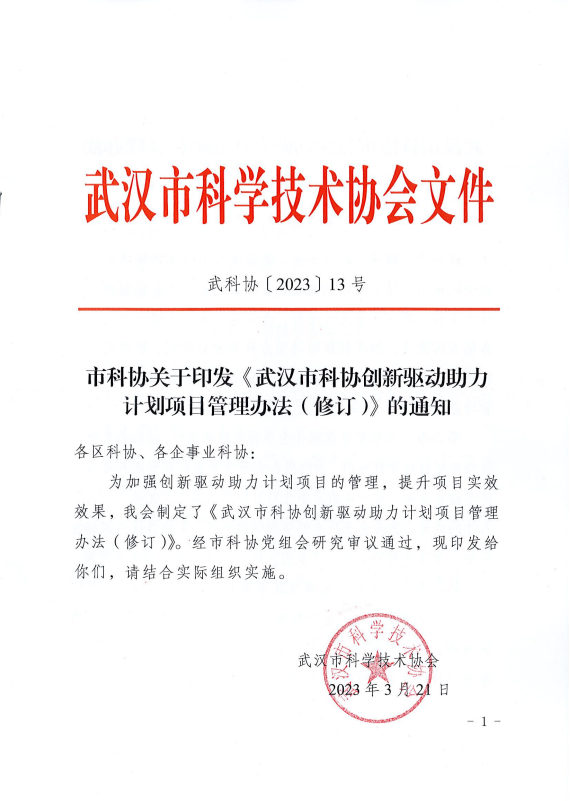 市科协关于印发《武汉市科协创新驱动助力计划项目管理办法(修订)》的通知