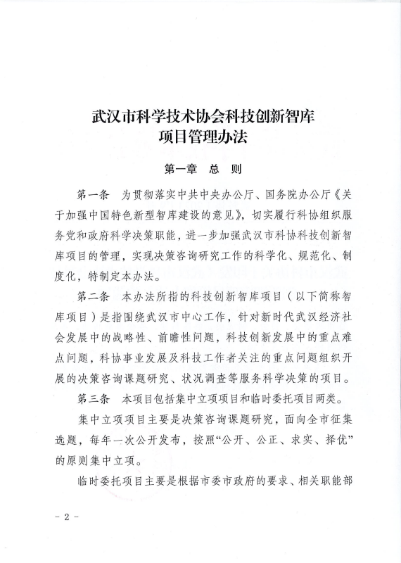 武汉市科协关于印发《武汉市科学技术协会科技创新智库项目管理办法》的通知