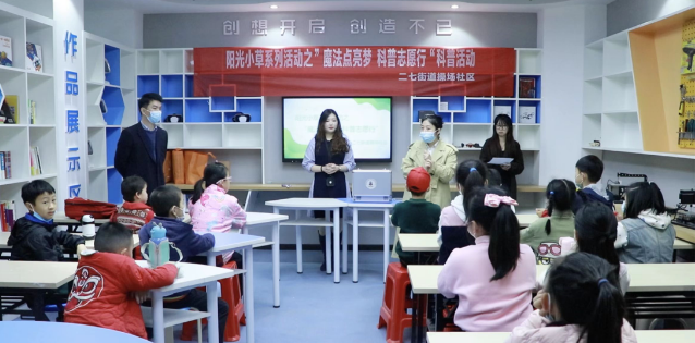 为提升全民科学素质,把党的领导贯彻到科普工作全过程,突出科普工作政治属性,强化价值引领,践行社会主义核心价值观,大力弘扬科学精神,二七街道操场社区通过发挥社区党建品牌“多彩民情档案”作用,整合“多彩资源力量”,为小朋友们定制“多彩服务项目”,联合魔境时空和武汉理工大学理响志愿服务队于4月8日在操场社区科技馆举行了阳光小草系列活动之“魔法点亮梦 科普志愿行”科普活动启动仪式。