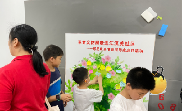 在母亲节和国际家庭日来临之际,武汉市江汉区花楼水塔街道江汉关社区联合武汉喜乐迪人工智能研究中心、石门峰纪念公园,在江汉关社区邻里之家开展了一场别开生面的亲子科普活动。活动中除了邀请学生和家长共同制作创意手工外,还特邀湖北军民抗战博物馆流动展览进社区,为大家带来了一场精彩的家谱家训主题展。