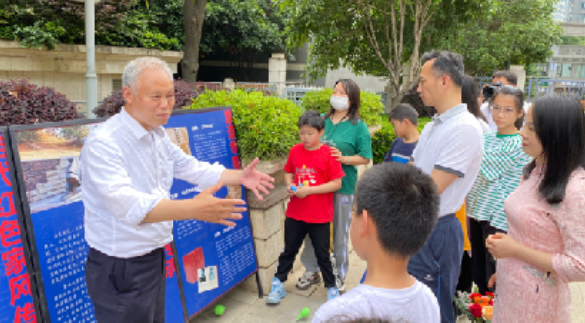最后,大家来到户外展示区,参观了家谱家训流动展。昌庆旭馆长结合展品,向大家介绍了湖北在抗战中做出的历史贡献,讲解了家谱家训的作用和意义,并鼓励大家要好好的珍视家庭,传承家族文化和家族精神,成为有责任感和担当的人。讲解中,昌馆长讲了好几个有趣的历史小故事,非常生动,让学生和家长近距离接触历史,感受民族精神的传承和发展。过程中还引来不少辖区居民驻足围观,大家纷纷被昌馆长的生动讲解感染。