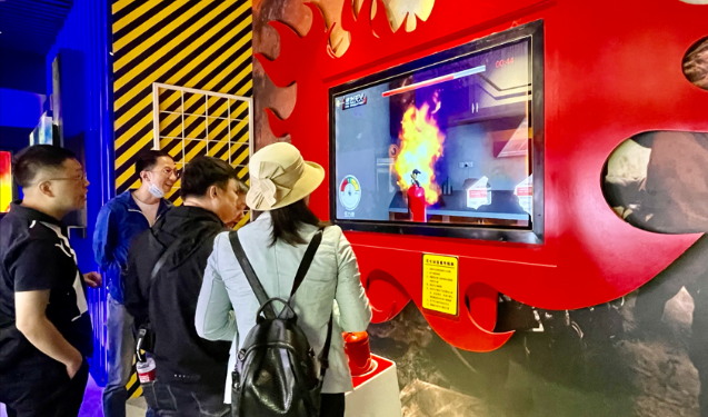 在木兰花谷国家人防防空防灾教育训练(武汉)基地内的防空防震科普馆,科普工作者们体验了5D影院、地震环幕体验屋等科普设施,沉浸式学习防灾减灾知识,增强应急避险意识和自救互救能力。