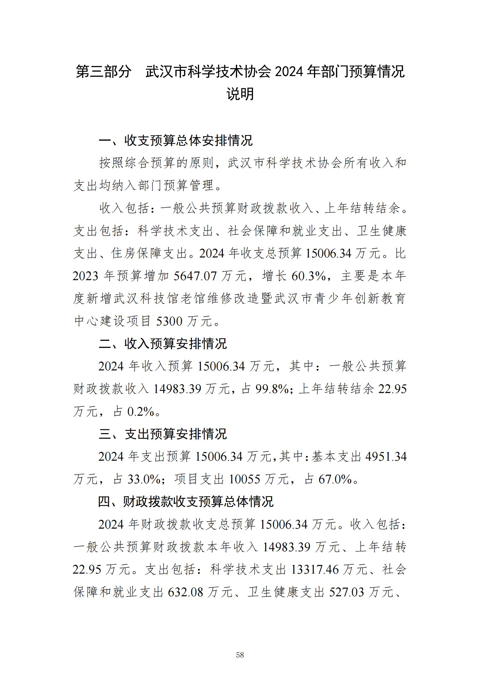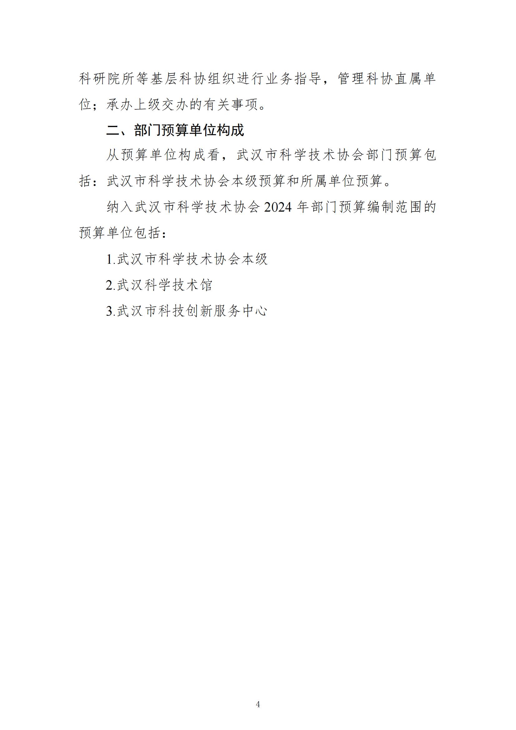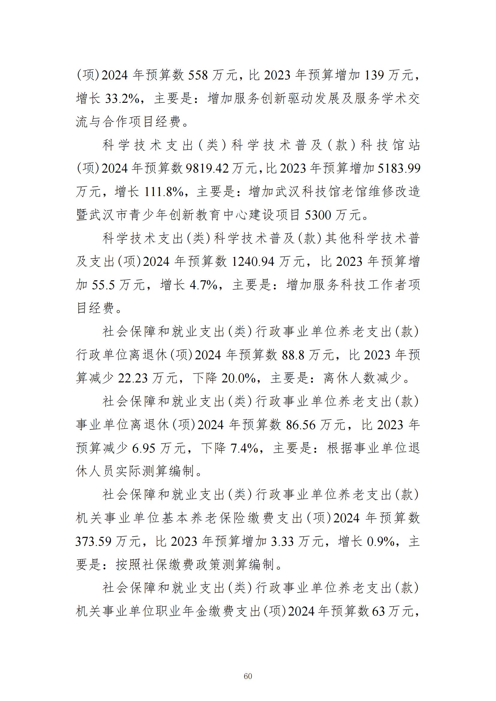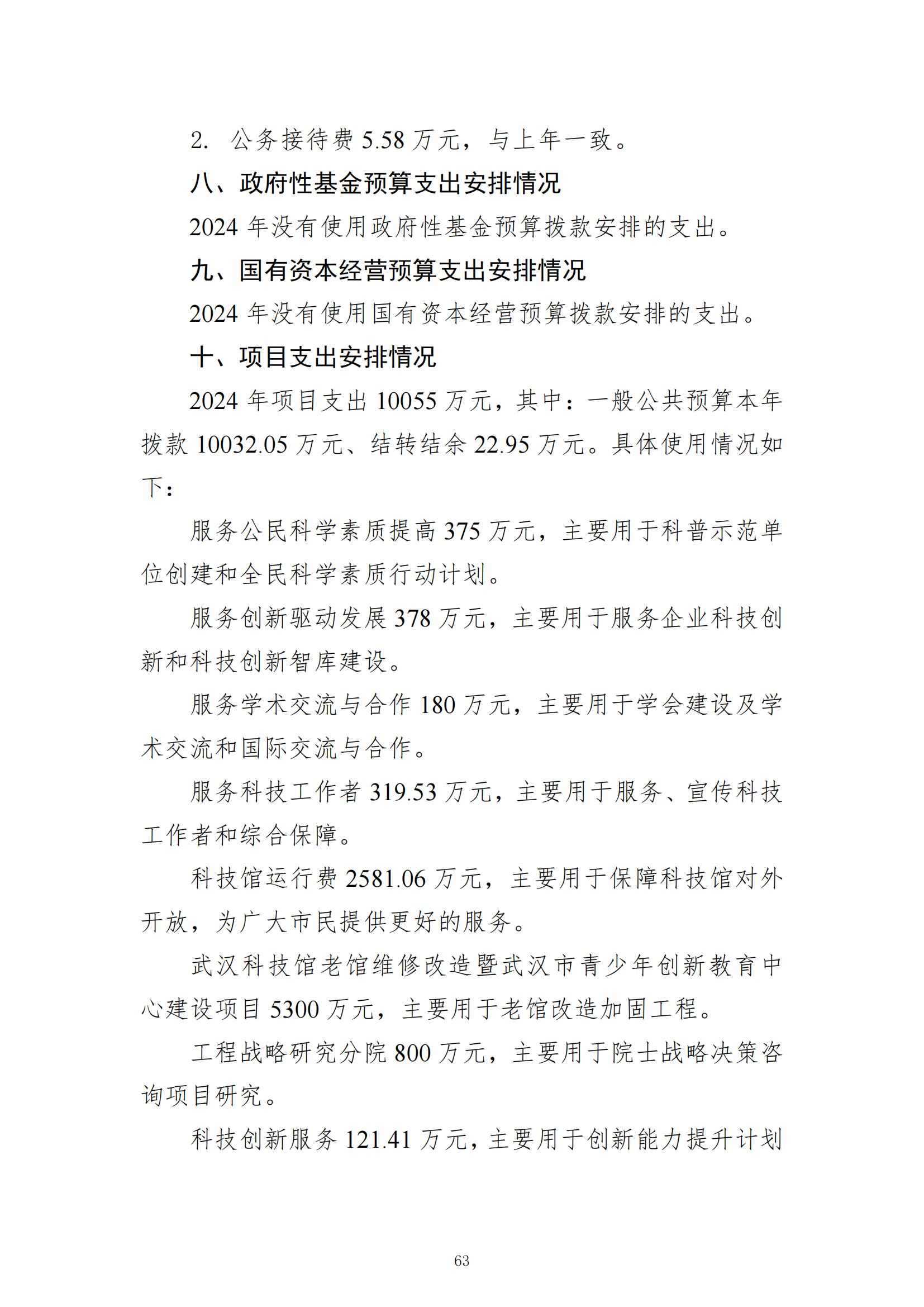 武汉市科学技术协会2024年部门预算