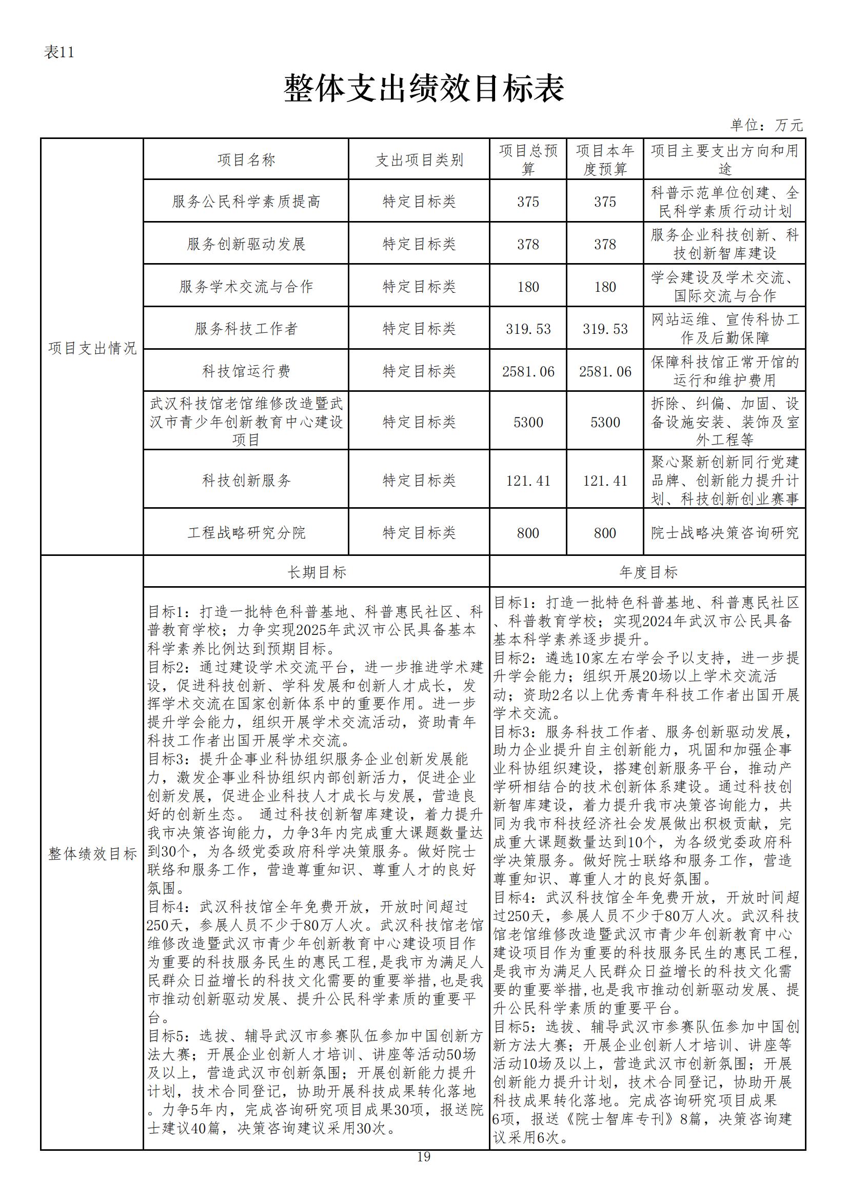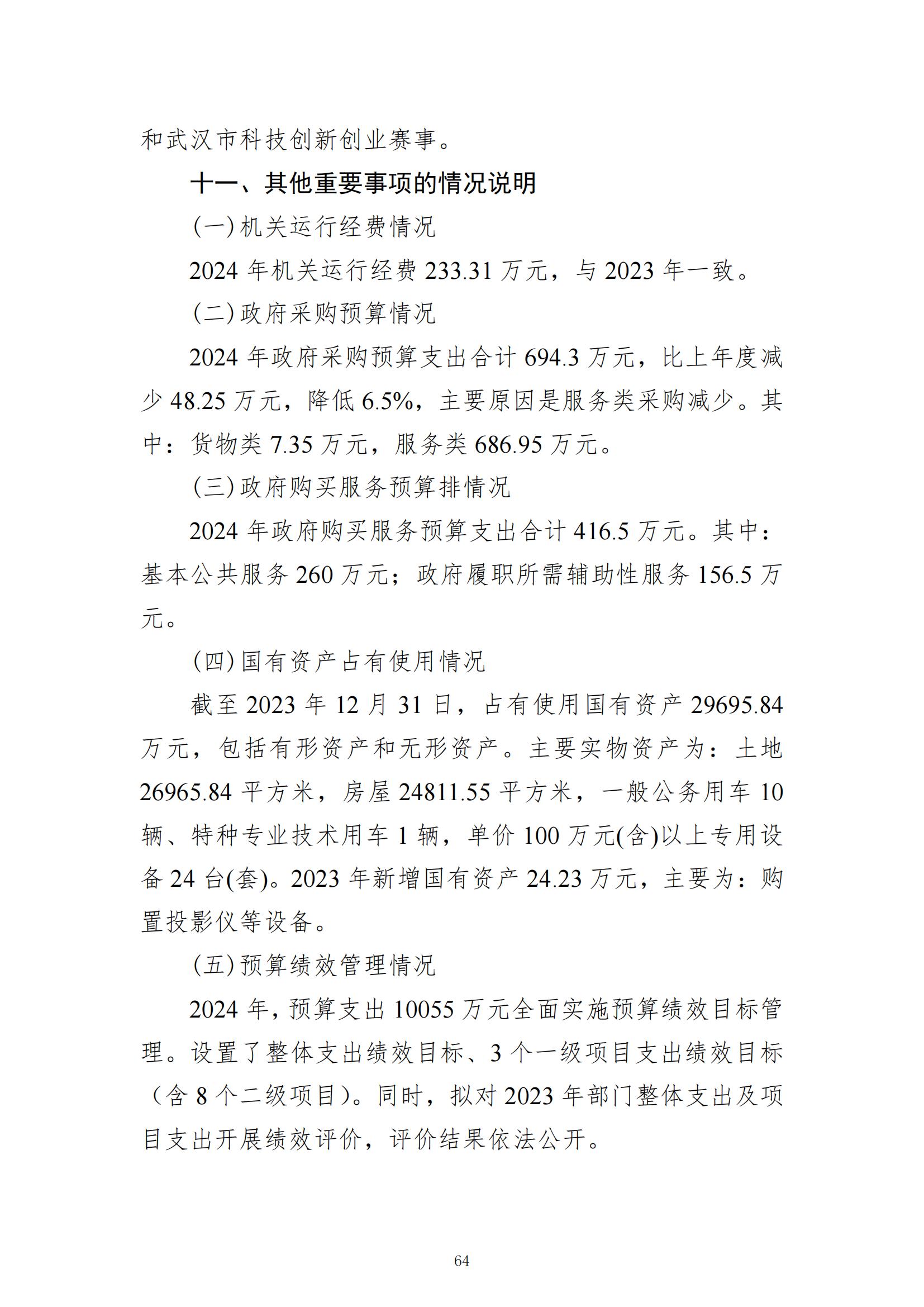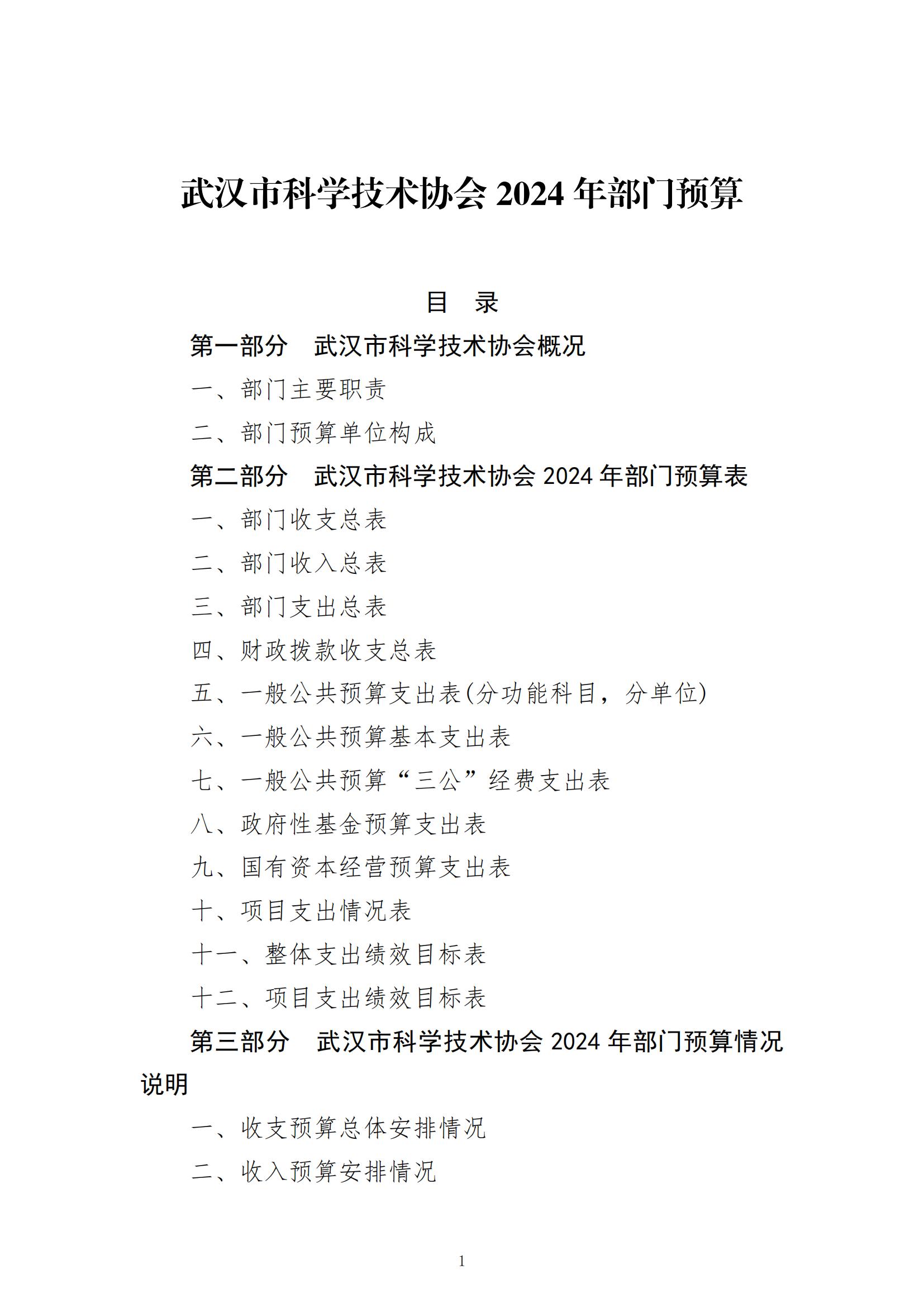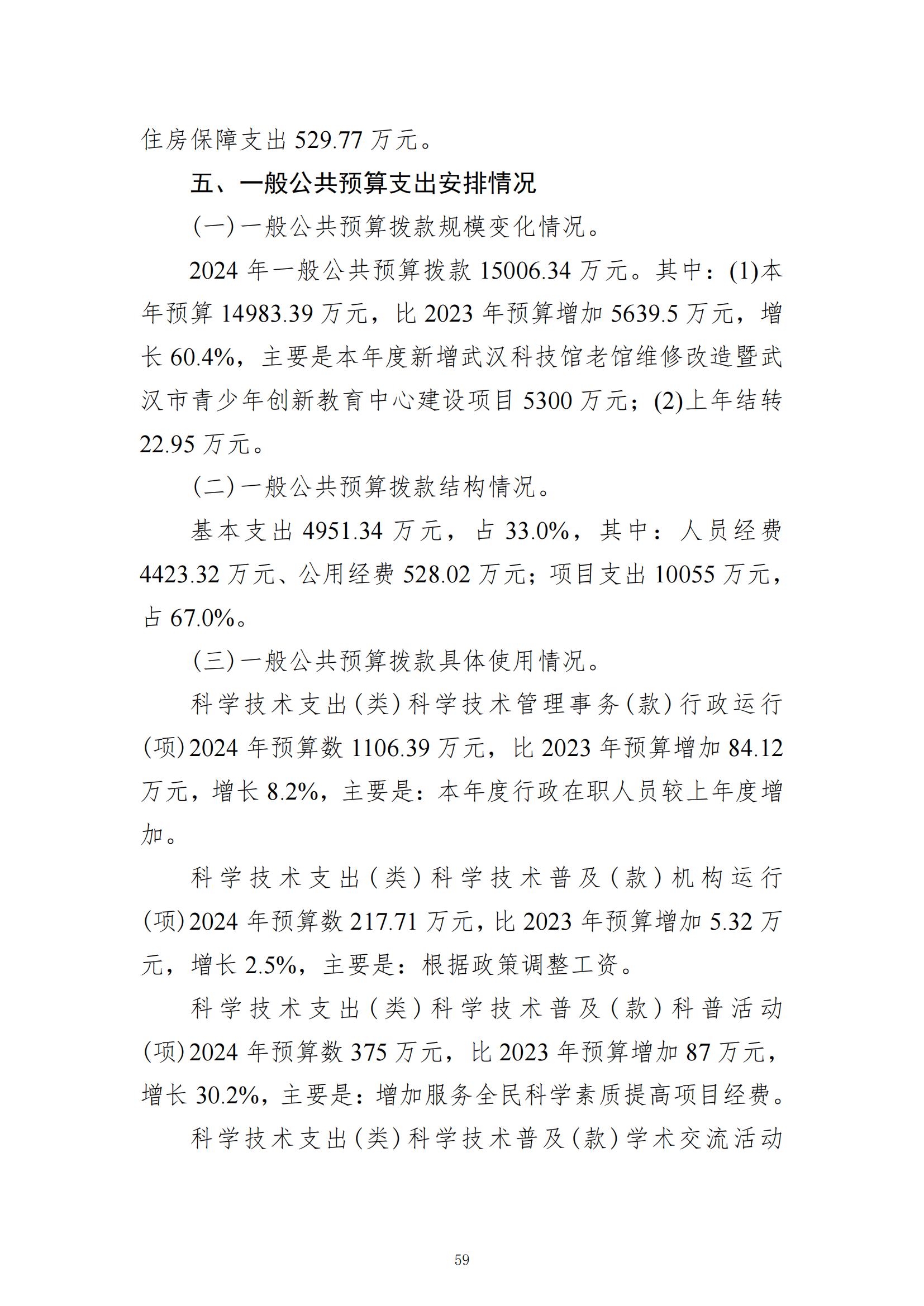 武汉市科学技术协会2024年部门预算