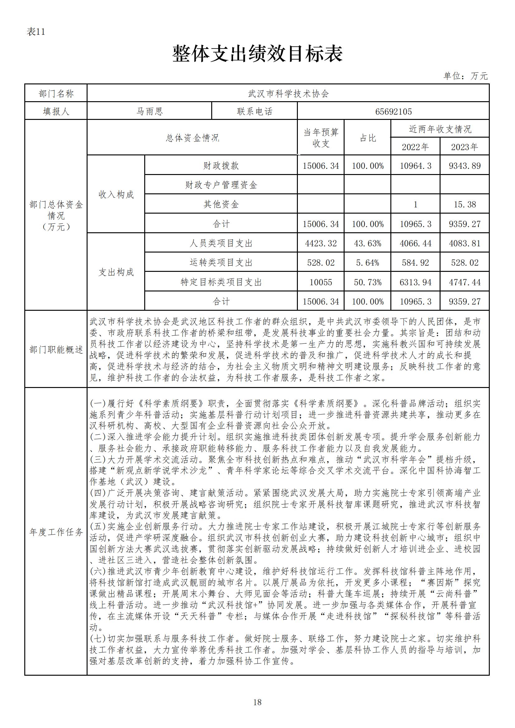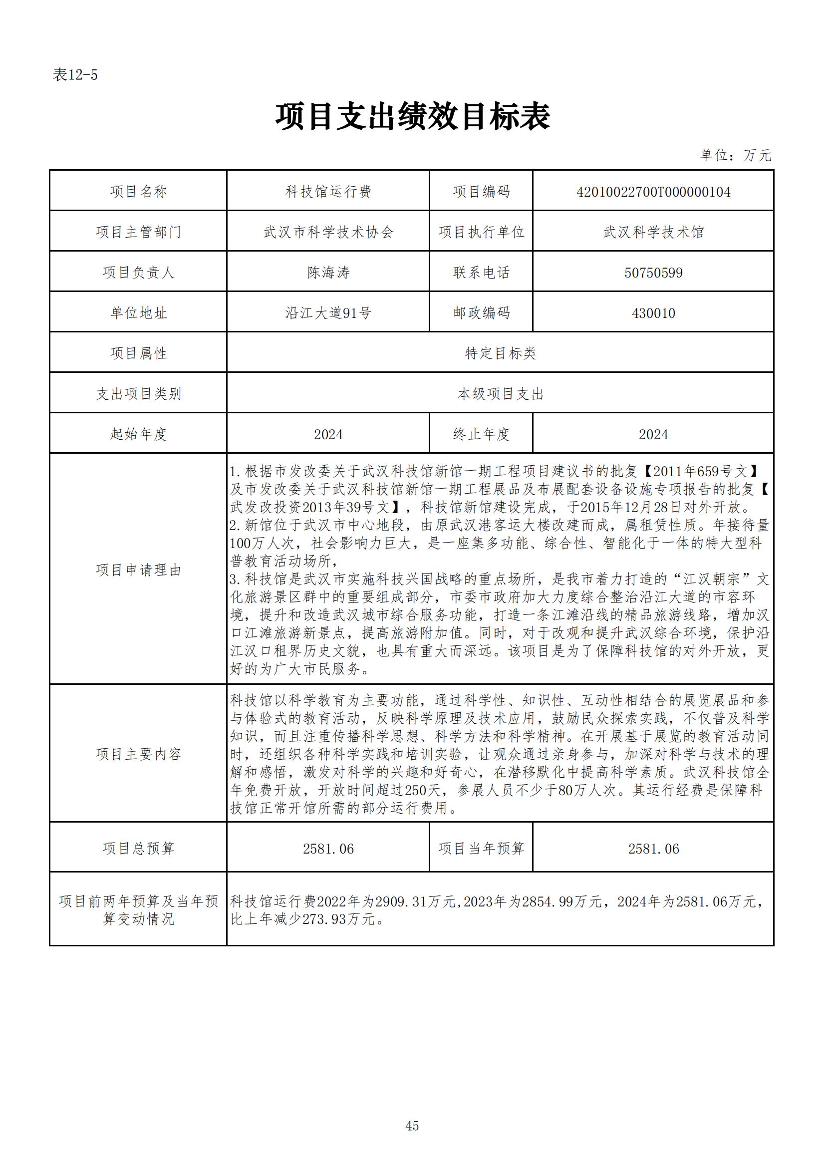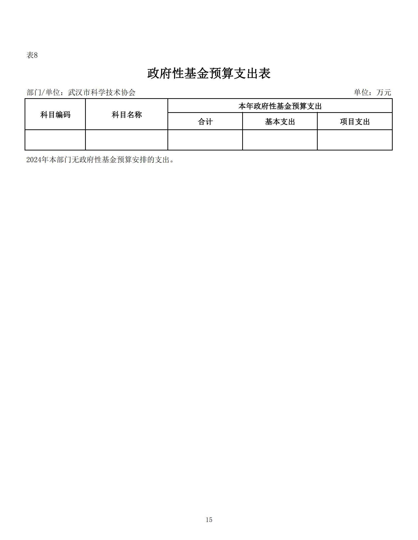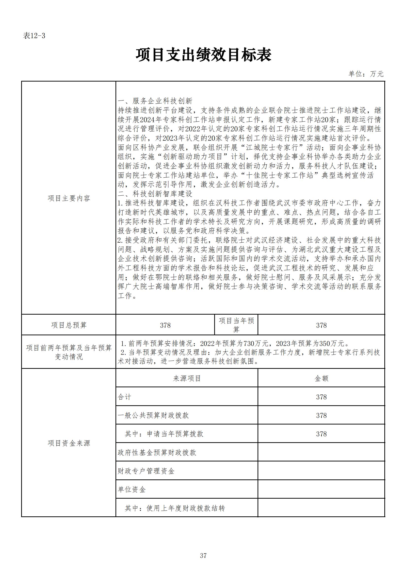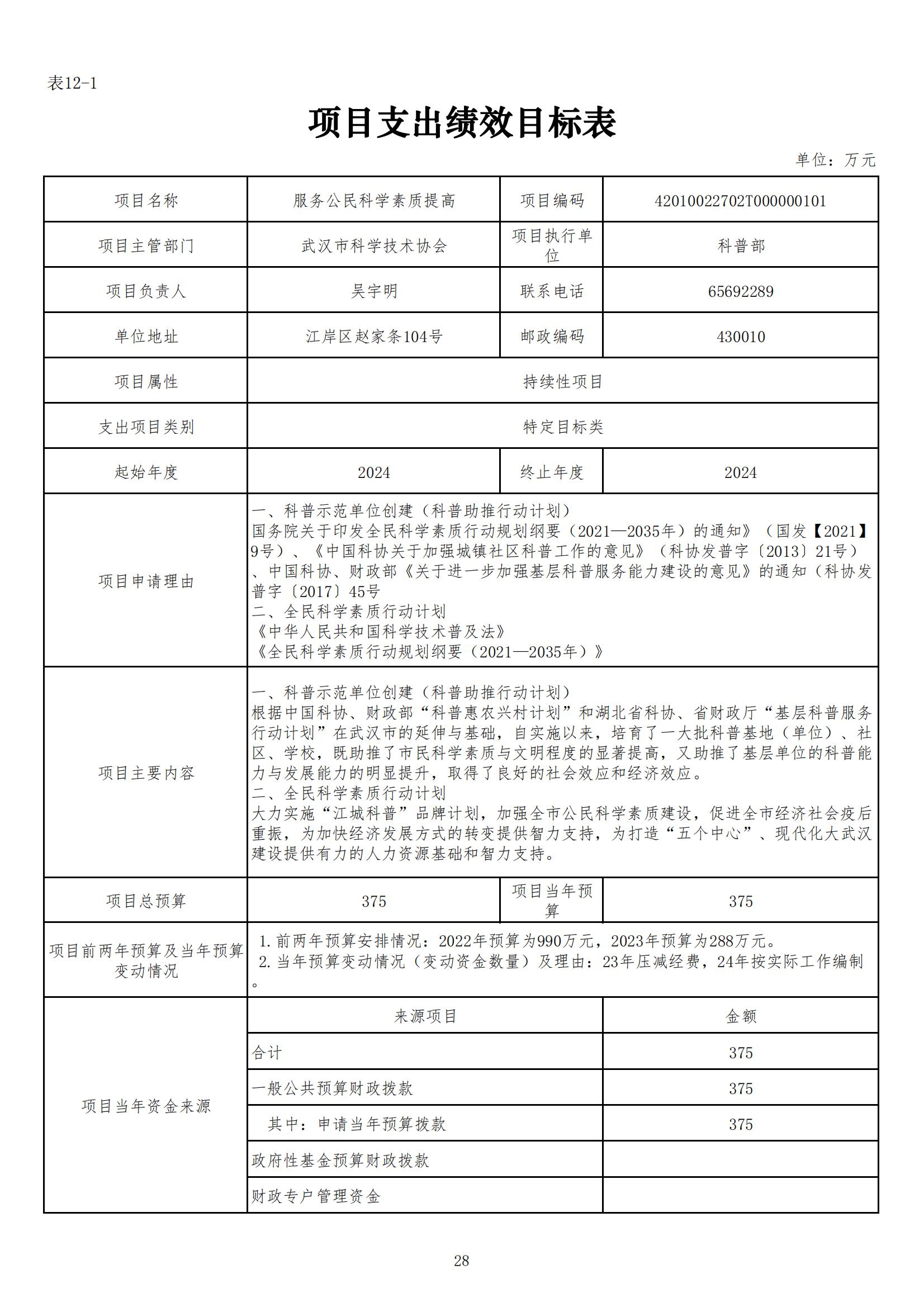 武汉市科学技术协会2024年部门预算