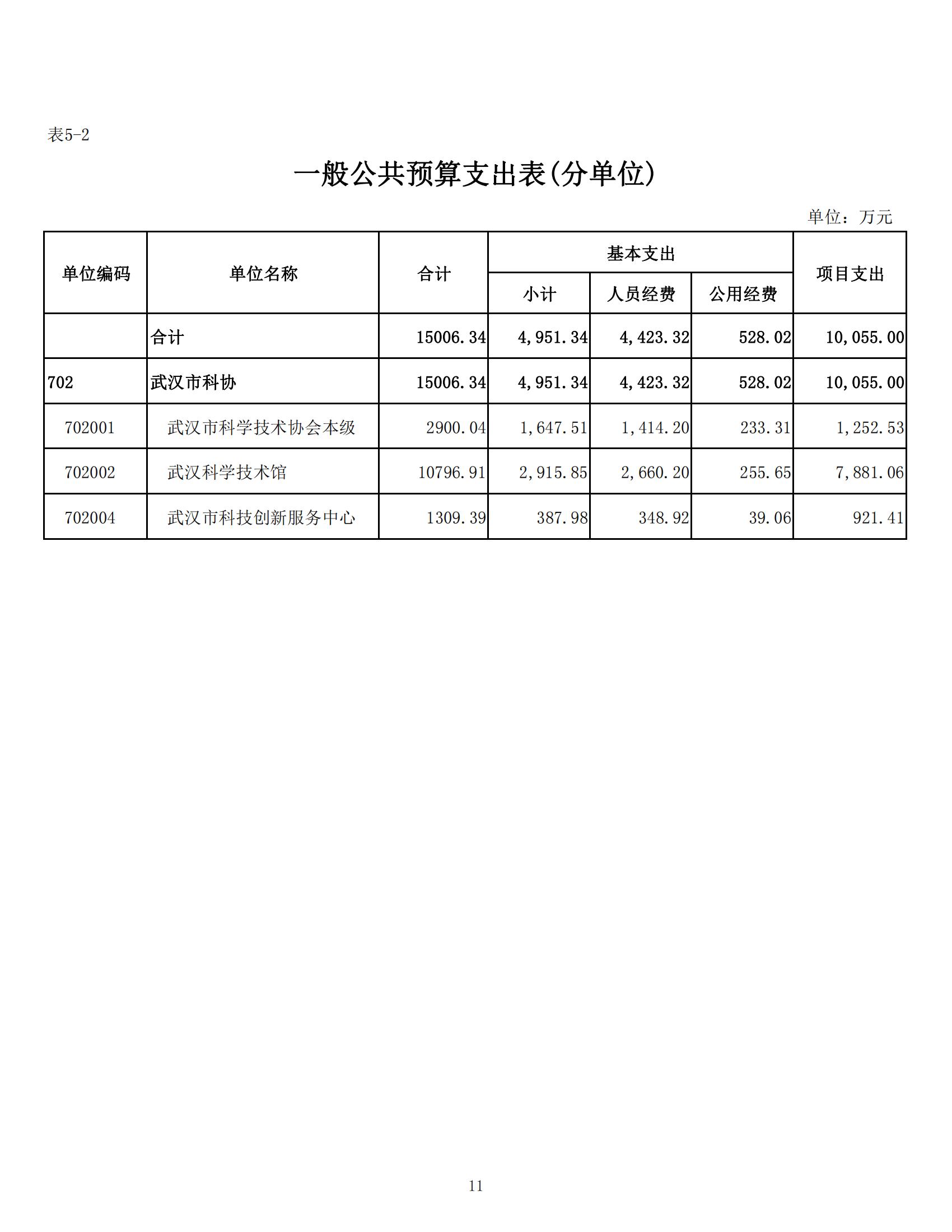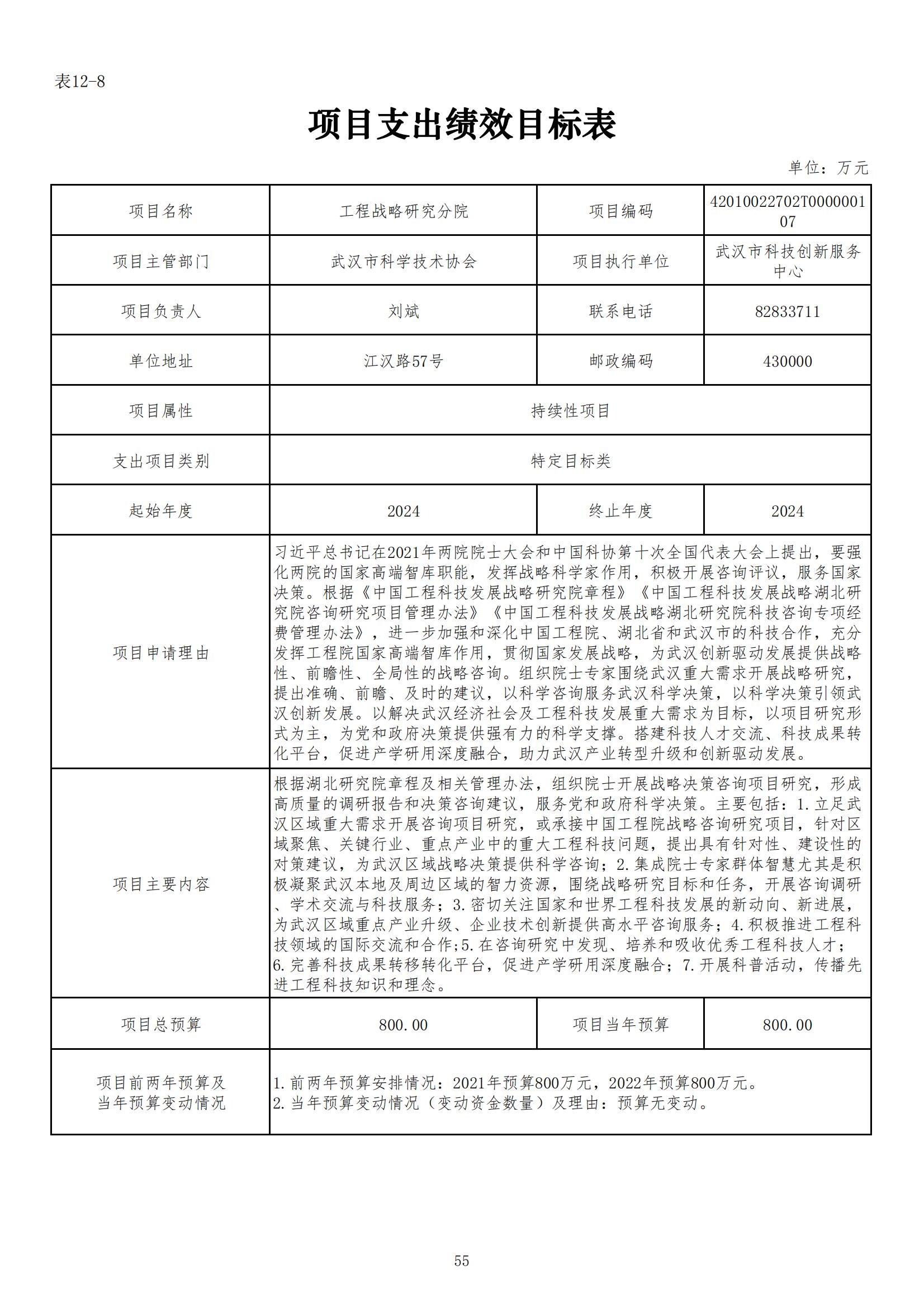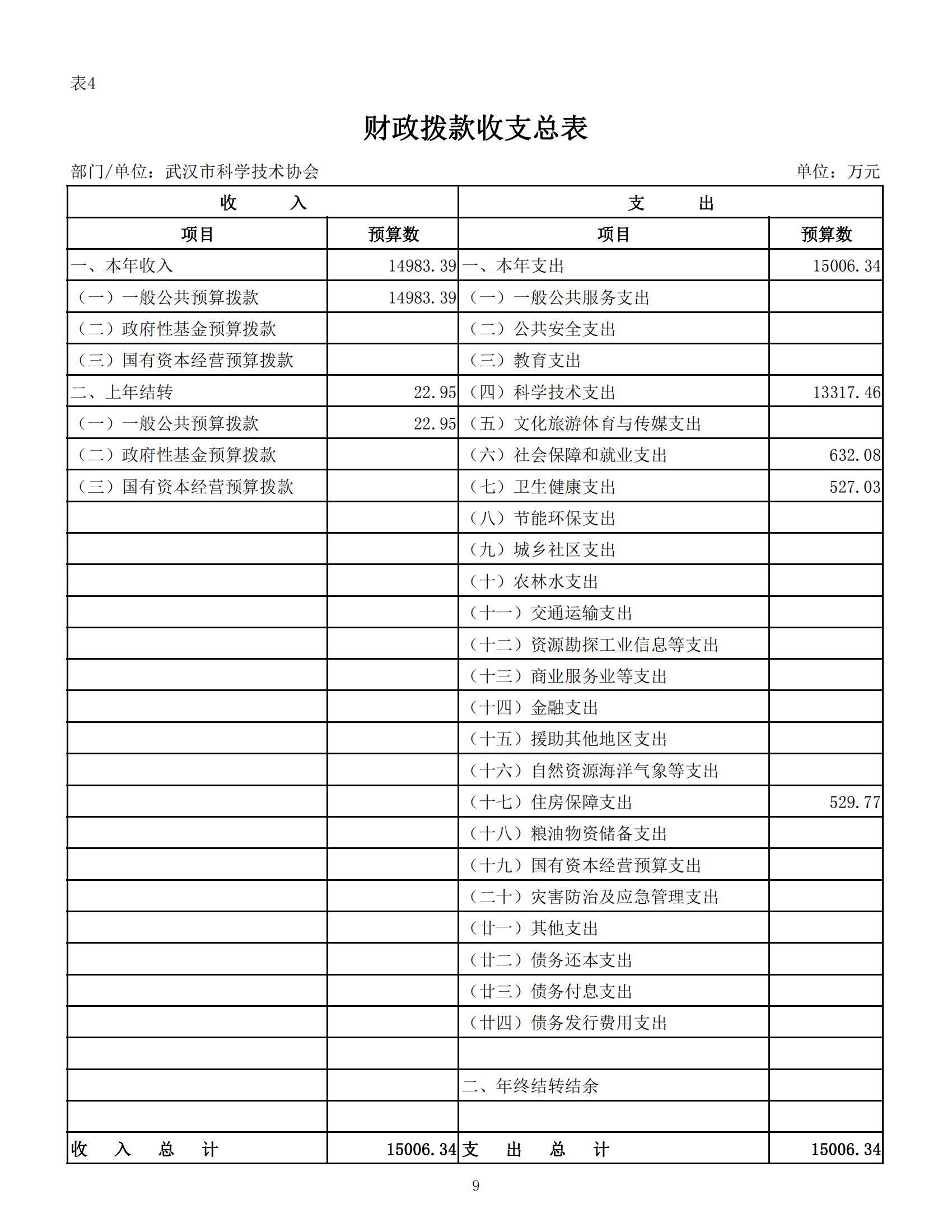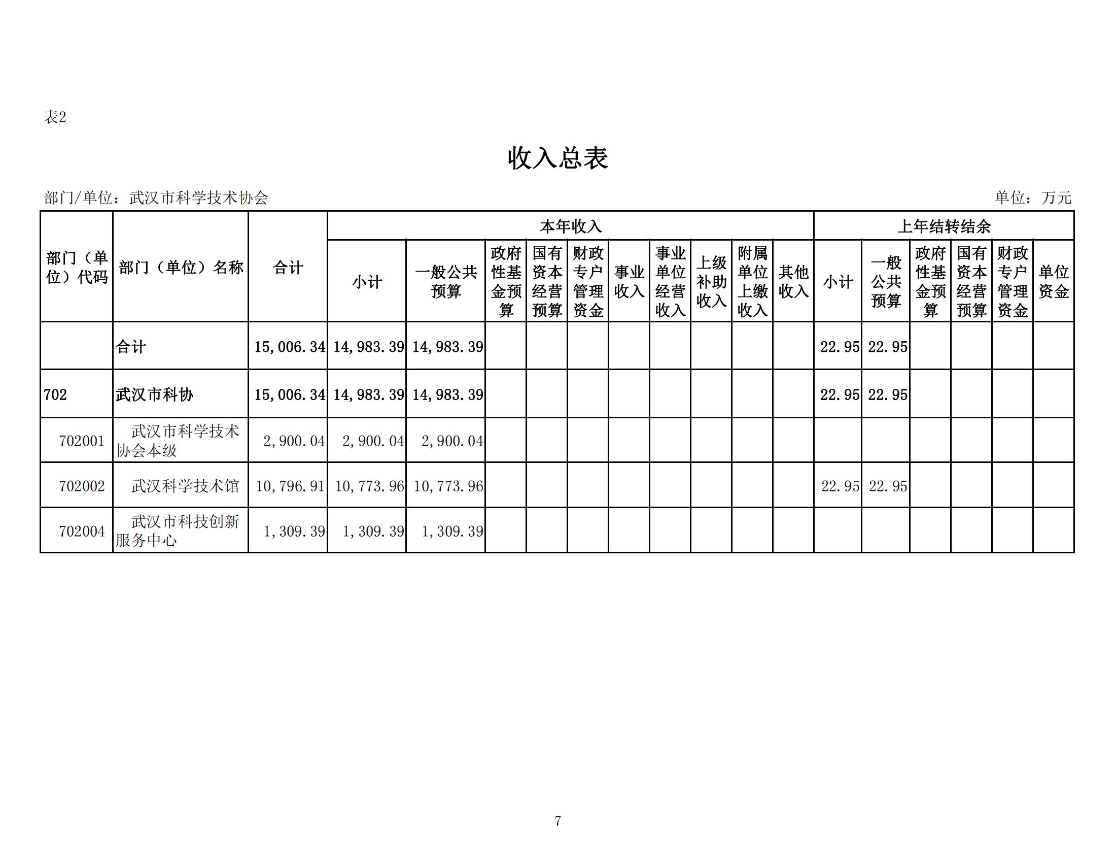 武汉市科学技术协会2024年部门预算